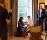 The younger generation of royals, Prince William, his wife Kate and his brother Prince Harry, hosted President Barack Obama and First Lady Michelle for dinner Friday at Kensington Palace in London.