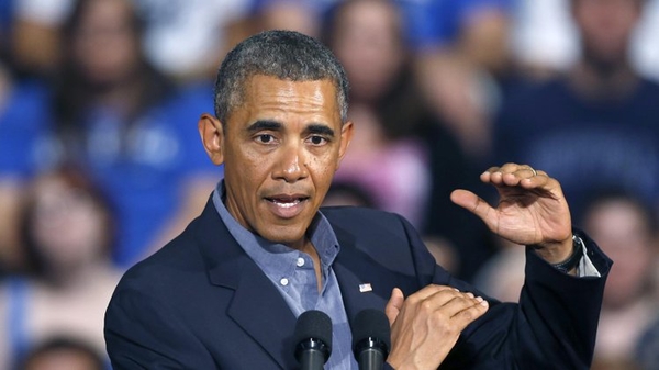 "Rather than seeking, keeping focus on a growing economy that creates good middle-class jobs, you know, we've seen a faction of Republicans in Congress suggest that maybe America shouldn't pay its bills that have already been run up, that we should shut down government if they can't shut down Obamacare," Obama said.
