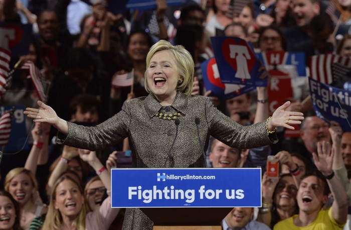 PHILADELPHIA — Hillary Clinton is on the verge of victory in the Democratic presidential primary, winning in Maryland, Pennsylvania, Connecticut and Delaware on Tuesday night. Her rival, Sen. Bernie Sanders of Vermont, won in Rhode Island.