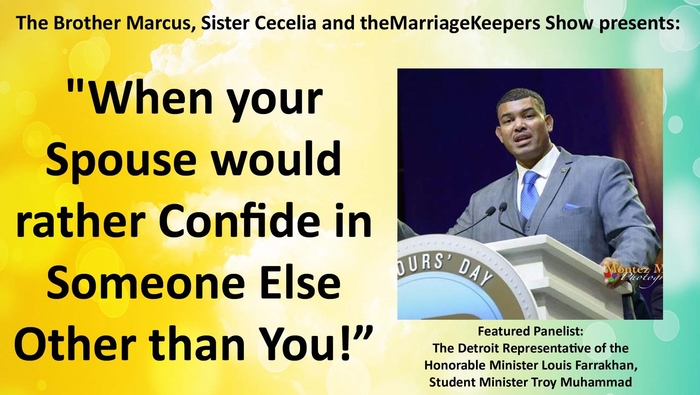 In this program, we were blessed to have the Detroit Representative of the Honorable Minister Louis Farrakhan, Brother Student Troy Muhammad, on our show!! The name of our show will be, "When your Spouse would rather Confide in Someone Else Other than You!” By the grace of God, this will be our 200th Show! He was totally awesome as he explained to us how we have to be worthy of the confidence of our spouses. You will enjoy him greatly! Thank you for your donation!!