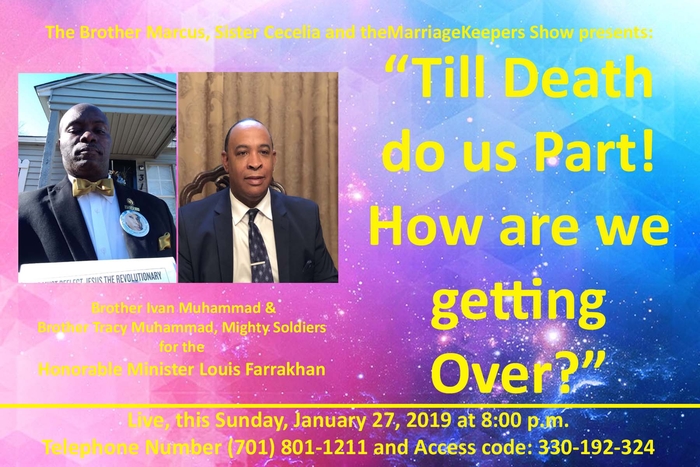 God willing, this Sunday, January 27, 2019, at 8:00 p.m. EST., please join theMarriageKeepers as we welcome Brother Ivan Muhammad & Brother Tracy Muhammad to our show. Both men unfortunately lost their wives and they have much to tell us regarding their experiences. We are going to thoroughly discuss, “Till death do us part! How are we getting over?”